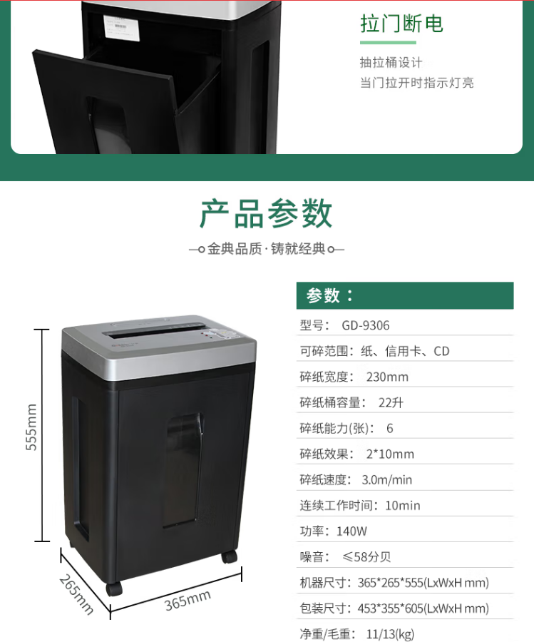 參數(shù) [品牌] 金典 [型號(hào)] GD-9306 [毛重] 13kg