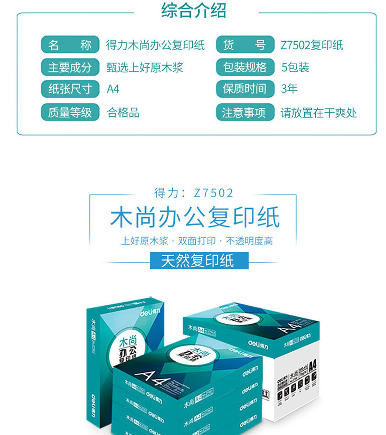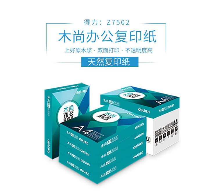 當(dāng)前位置: 首頁 > 辦公耗材 > 復(fù)印紙 > 得力木尚 Z7502 A4復(fù)印紙 (5包裝)